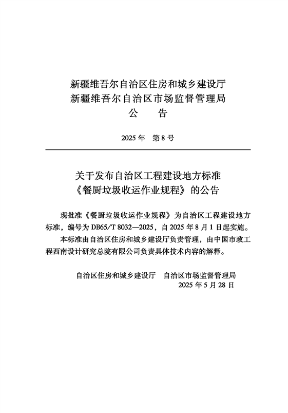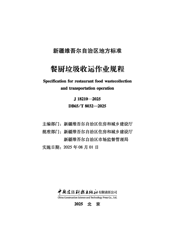 DB65 T8032-2025 餐厨垃圾收运作业规程